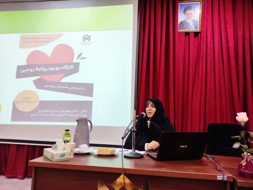 •  در این نشست آموزشی، موضوعاتی همچون مهارت گفت‌وگو، بهزیستی فیزیکی، شفافیت در روابط، کنترل هیجانی و دستیابی به توافق‌های ساده و عینی در زندگی زوجین مطرح شد و راهکارهای کاربردی برای بهبود تعاملات خانوادگی ارائه گردید. برگزاری این کارگاه در راستای ارتقای سلامت خانواده و تقویت مهارت‌های زندگی، بخشی از رویکرد اجتماعی دانشگاه دولتی کاشمر عنوان شد.